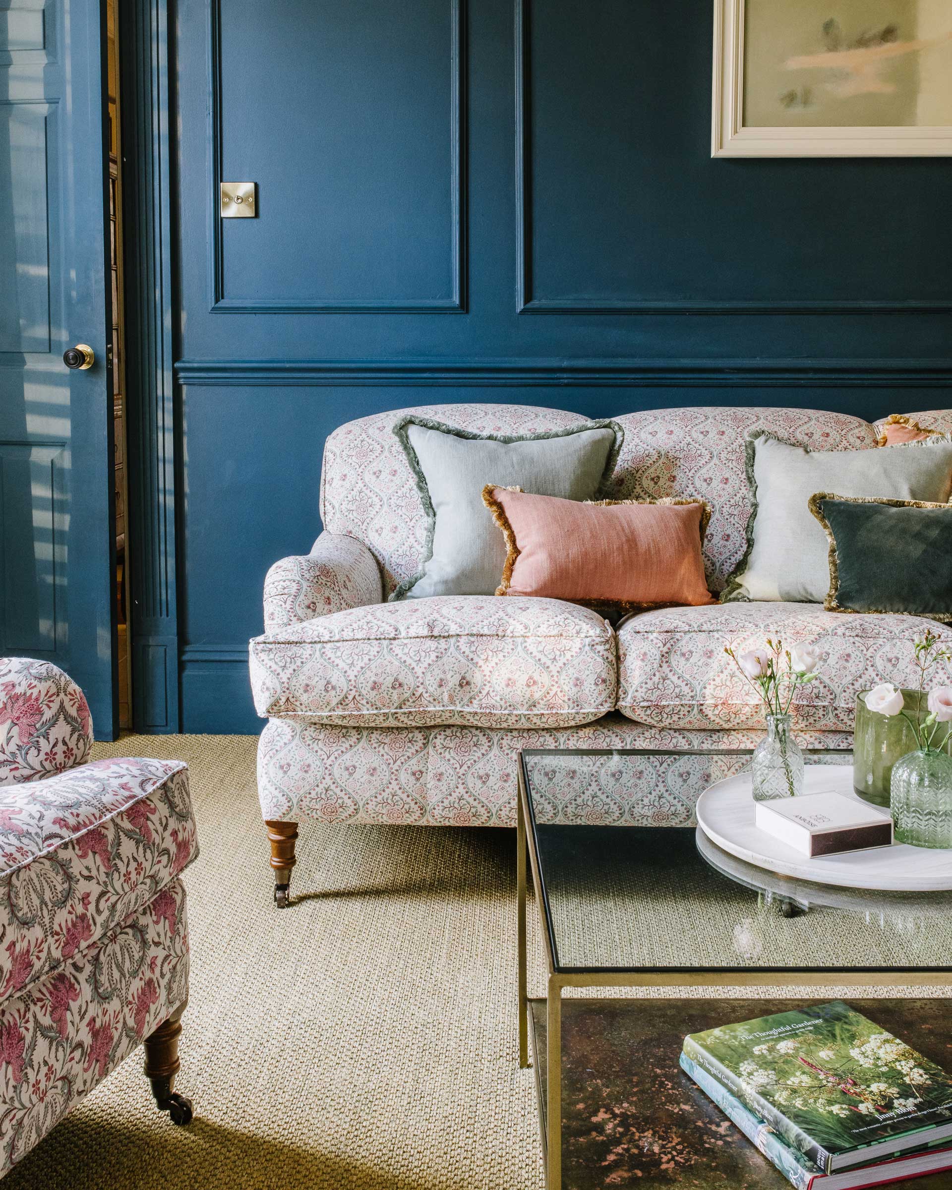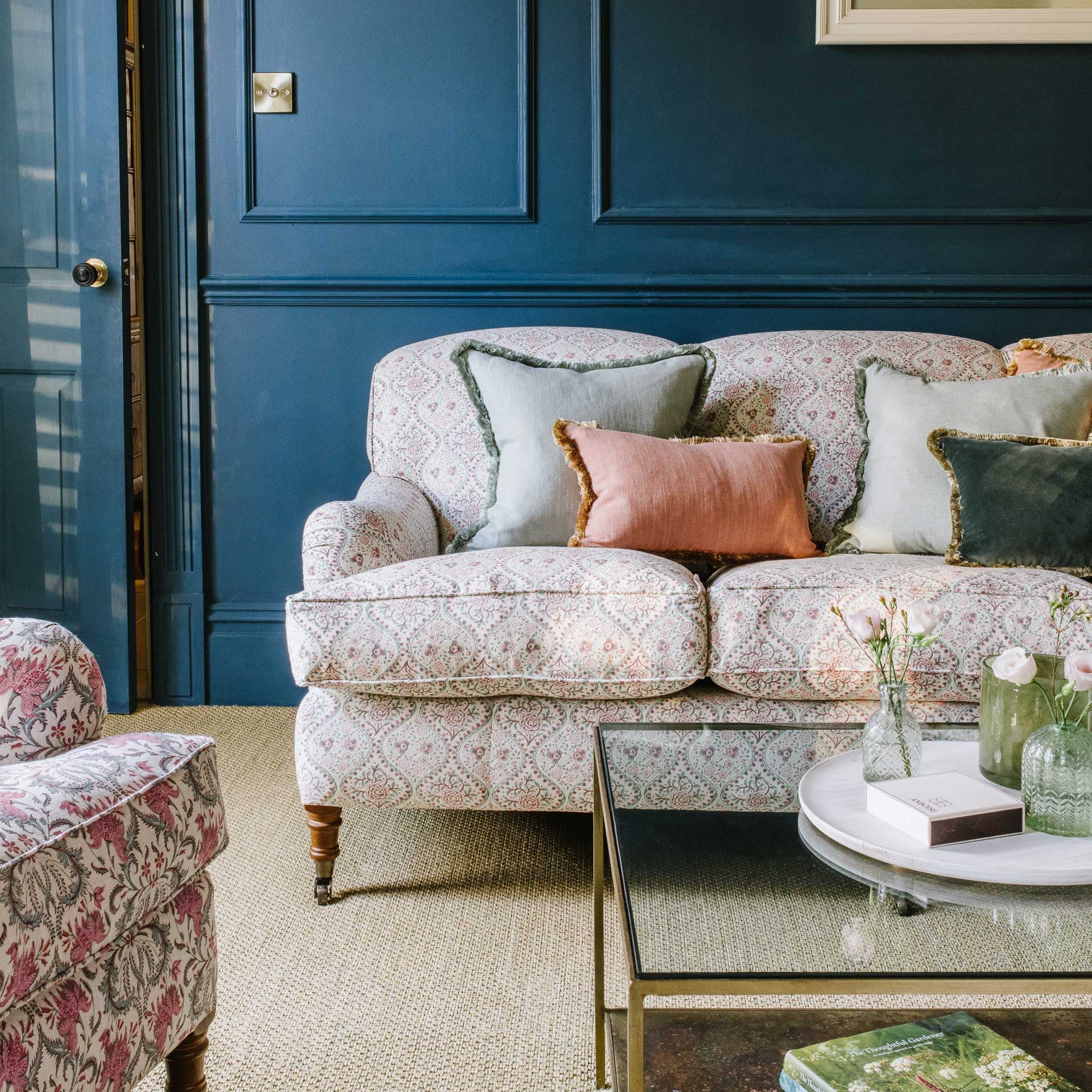 Handmade in the UK using seasoned hardwood, the steel springs are individually hand tied to ensure even weight distribution and the cushions are filled with sumptuous feather and down. Made to be passed from generation to generation.