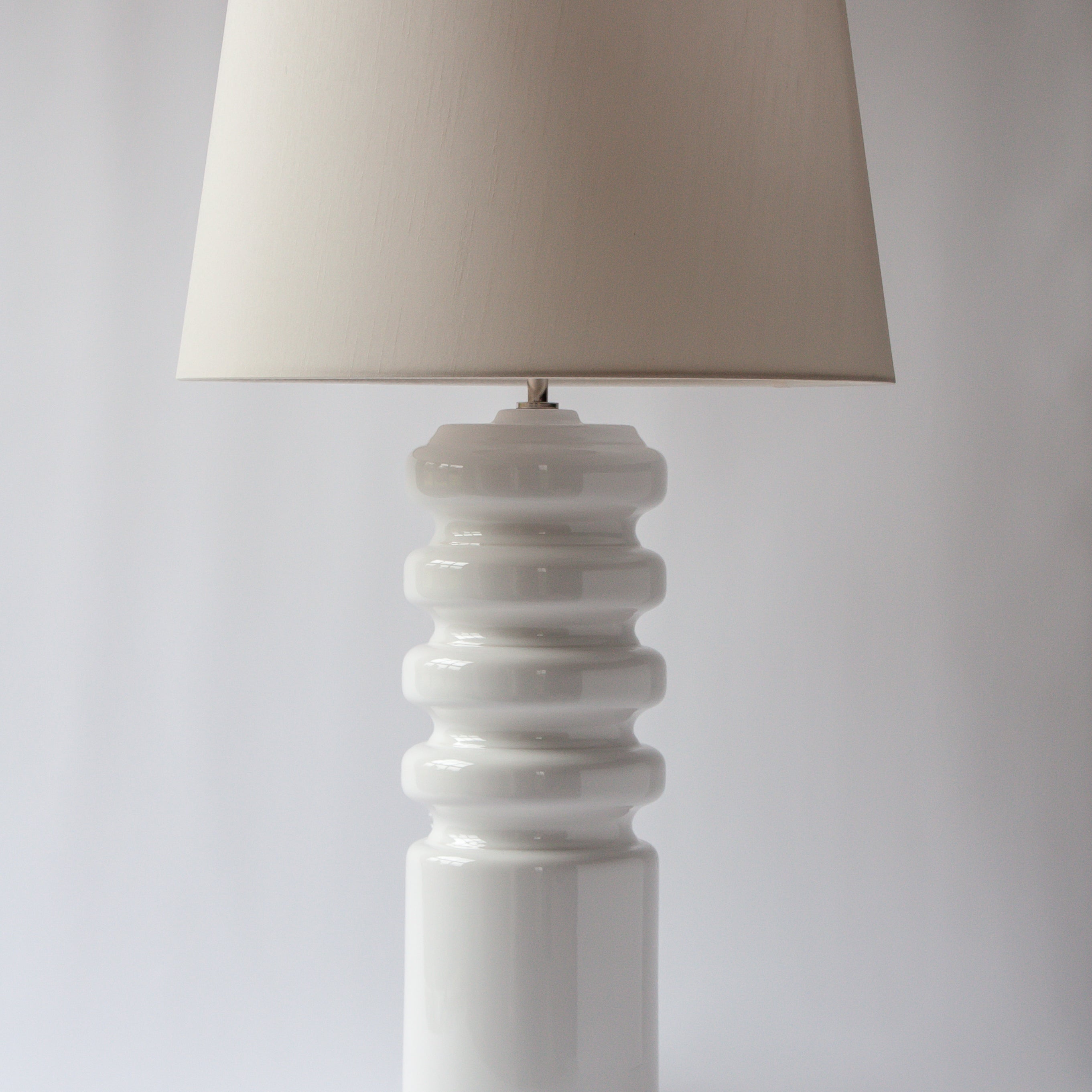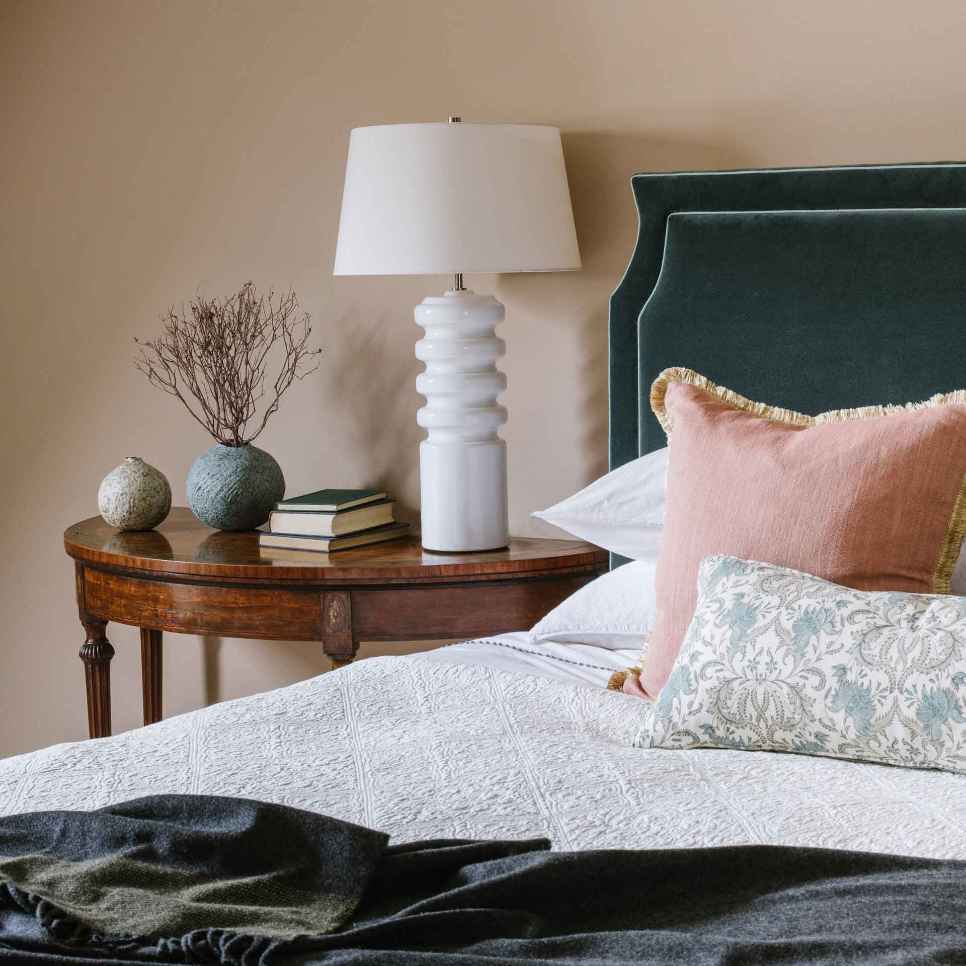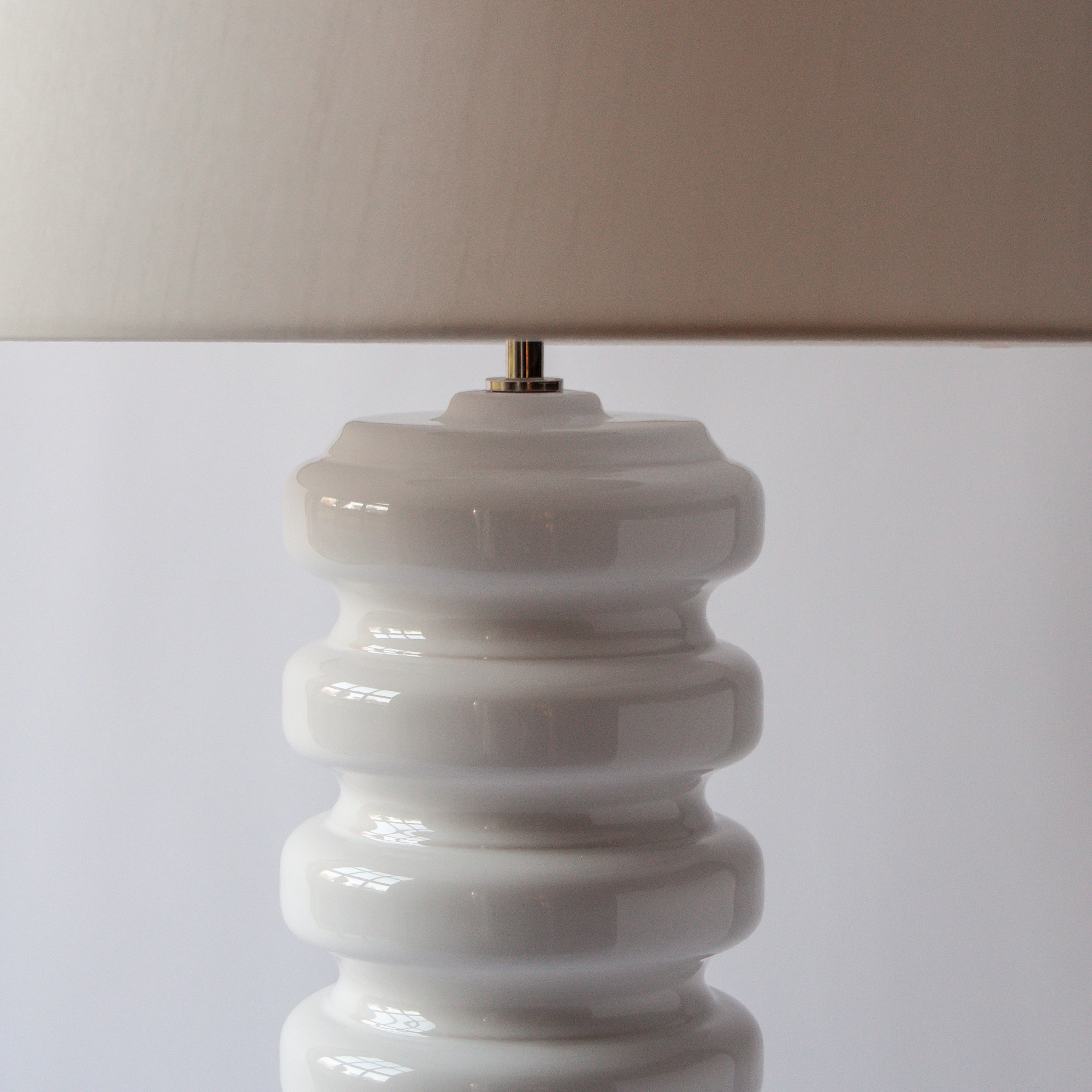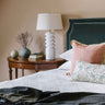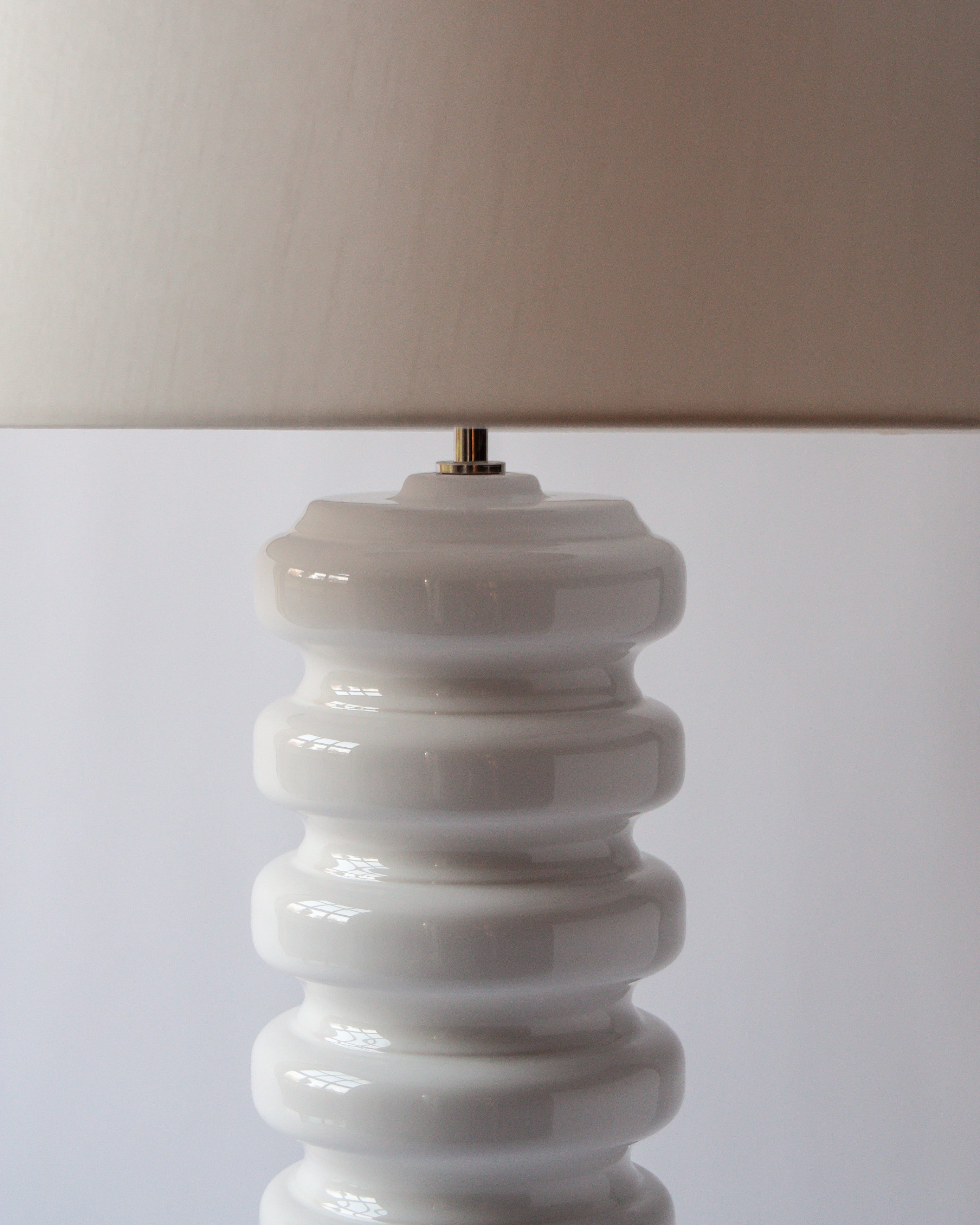 The Harper ceramic table lamp with interesting curves and co-ordinating Ivory shade will sit elegantly on any bedside or sitting room table.