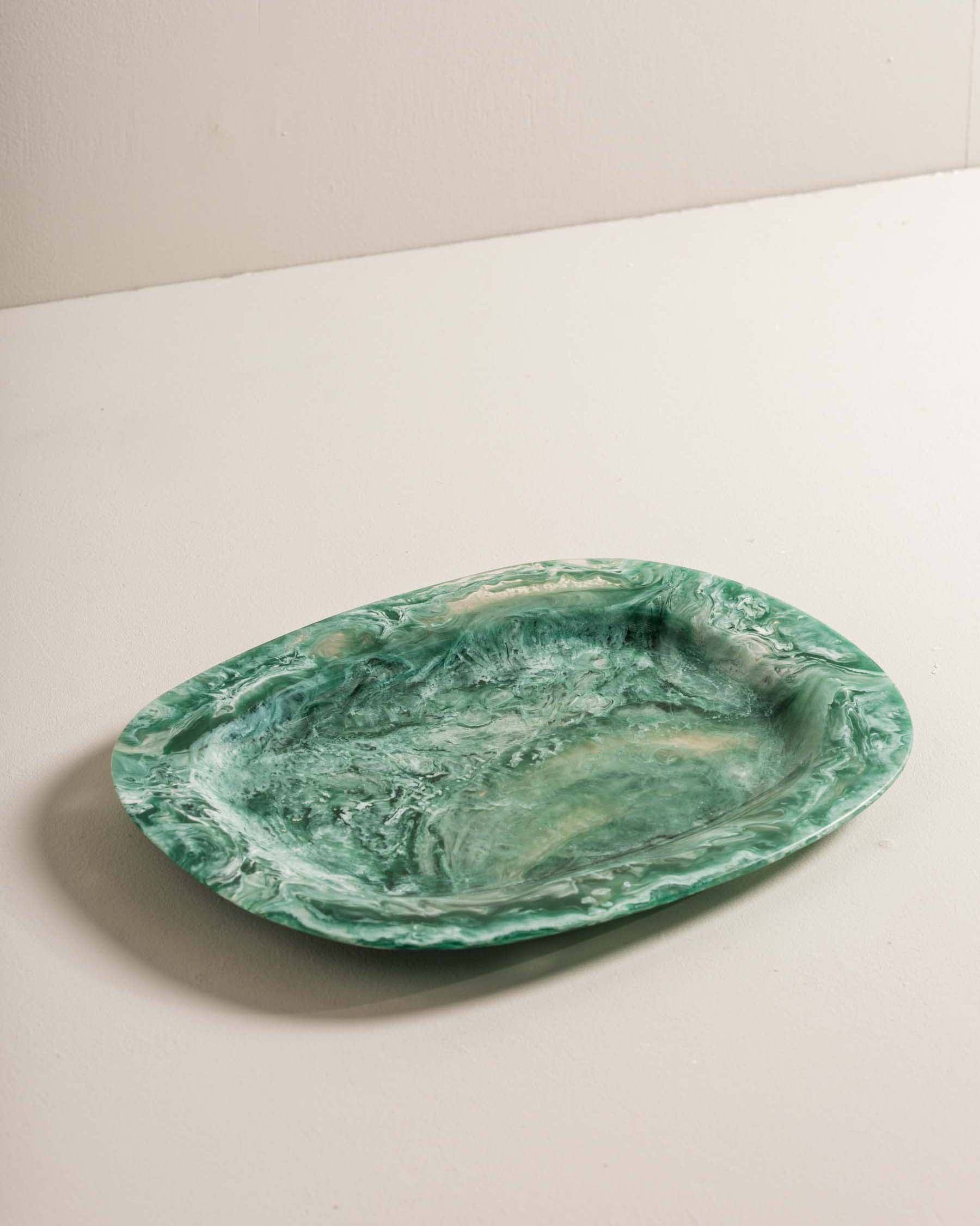 A stunning green tray that works as a stylish decorative piece or a practical party accessory. Its rich colour and natural resin patterns make it a standout addition to any home.