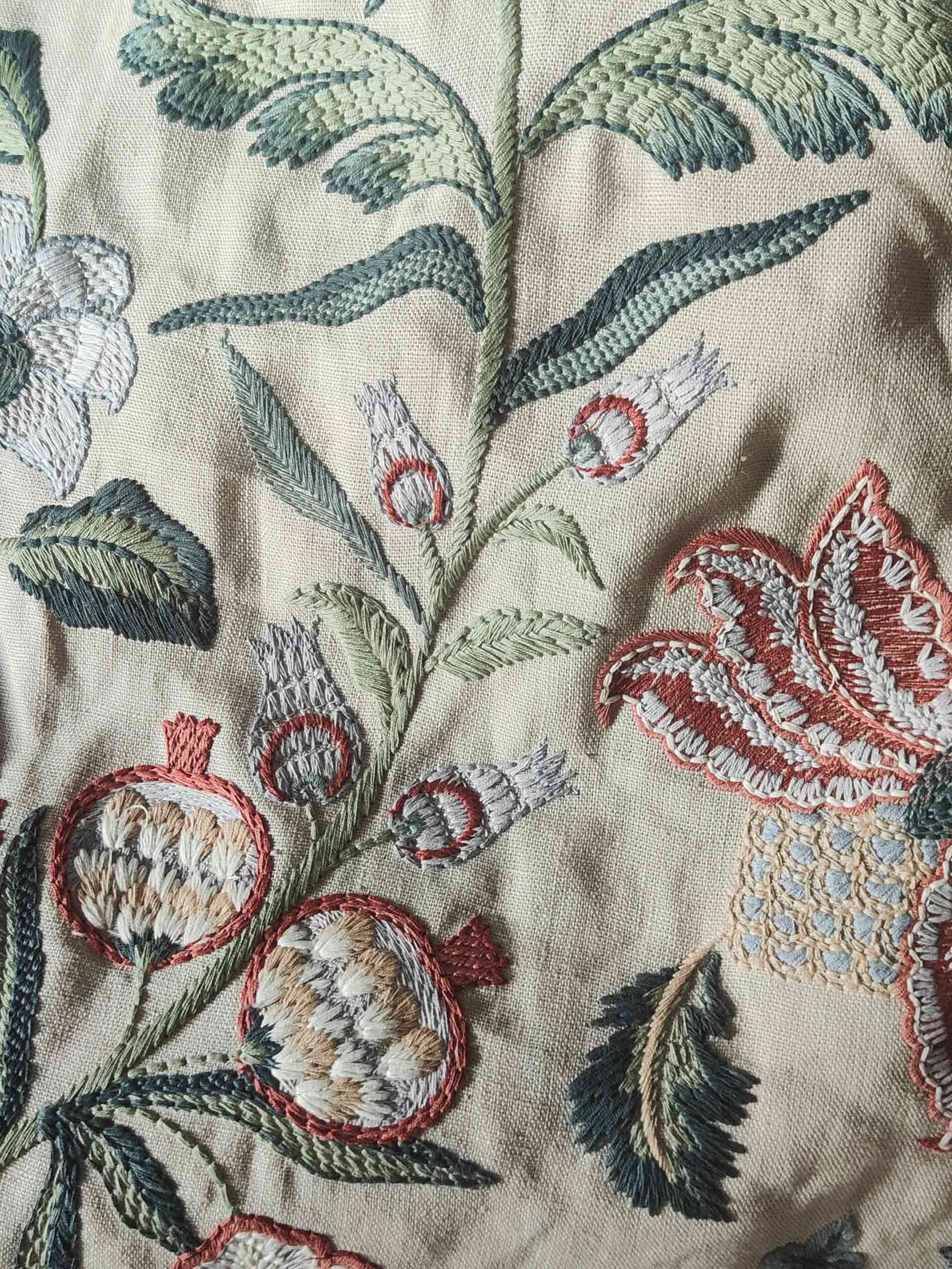 Front: Linen and cotton mix. Back: 100% cotton. Filling: 100% cotton. Dry clean only.