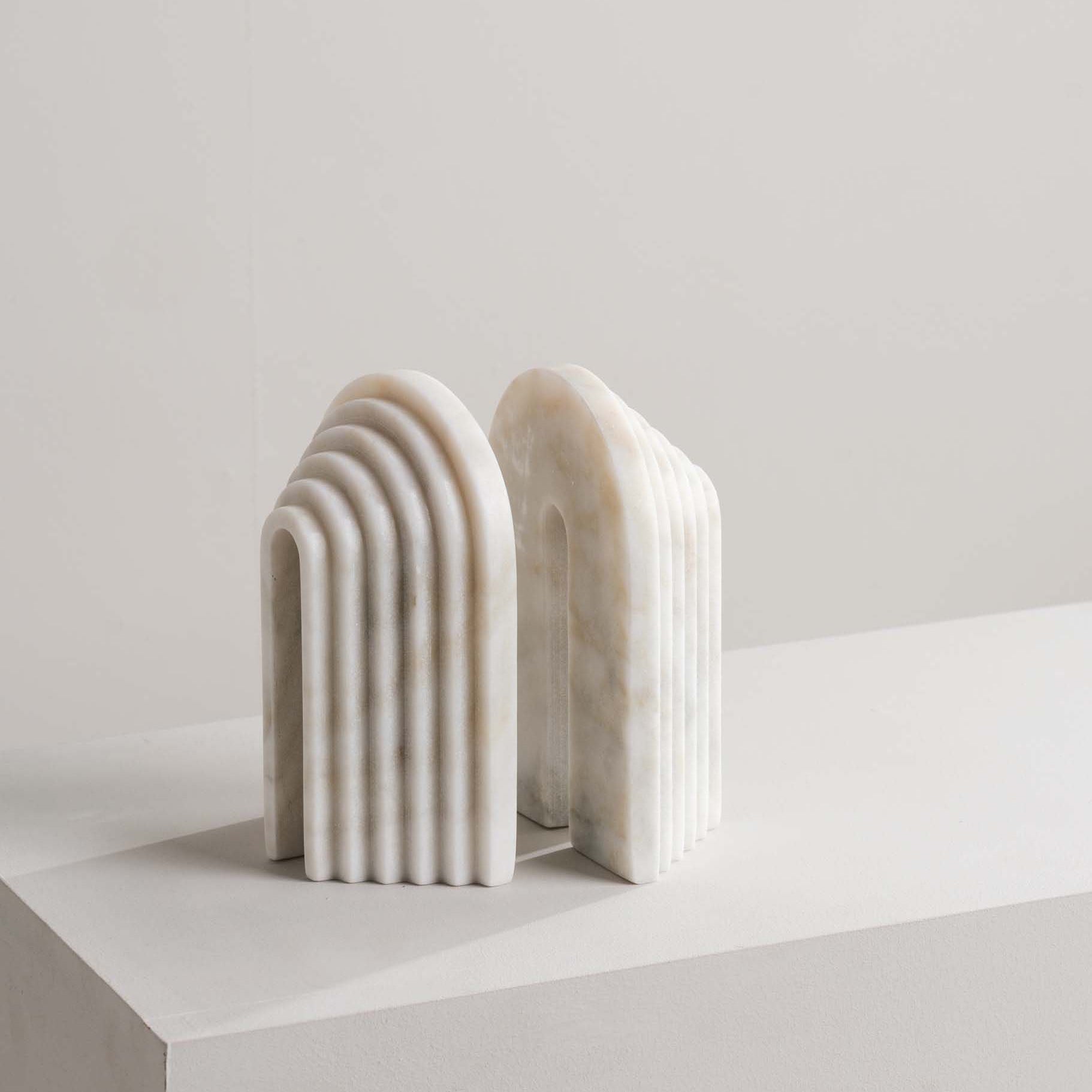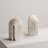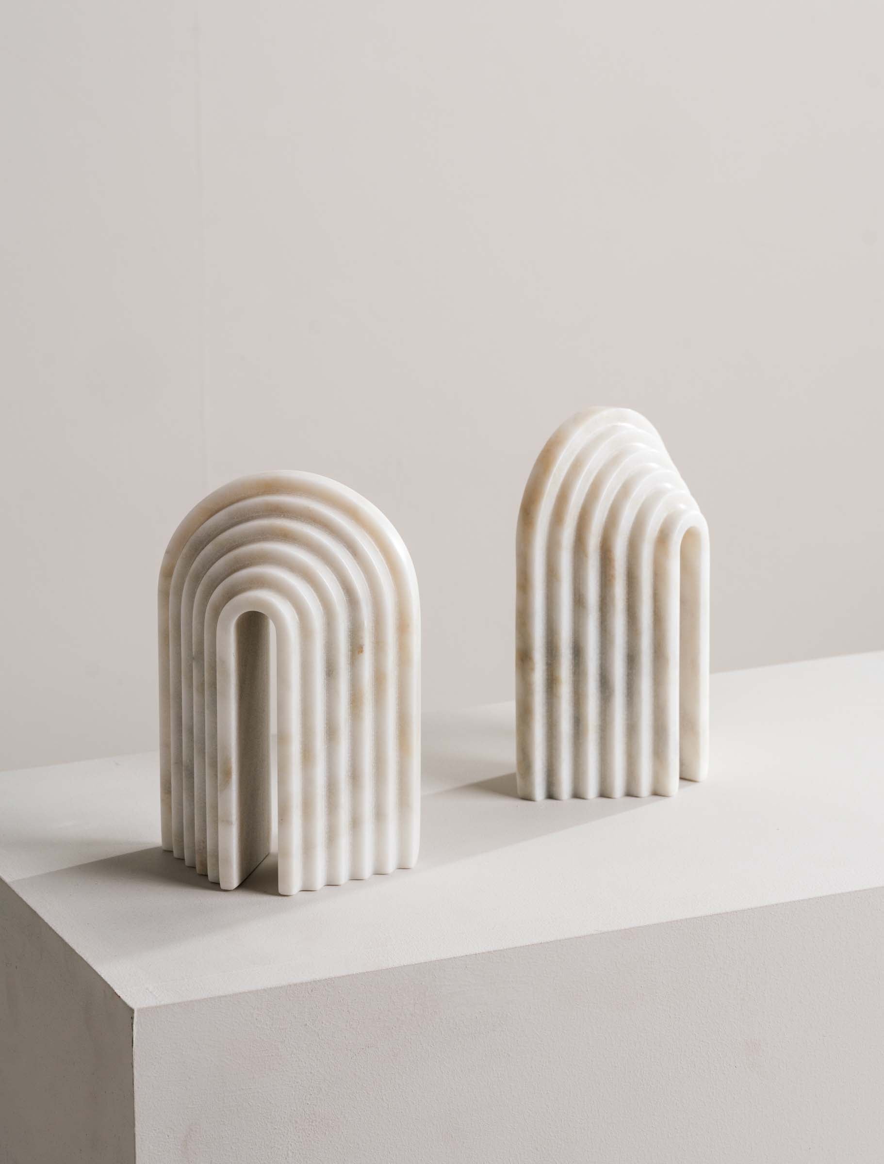 Combine art and function with these white marble bookends featuring geometric lines and a smooth, curved top. Handcrafted from solid marble, they add a modern, sculptural touch while keeping your books neatly in place.