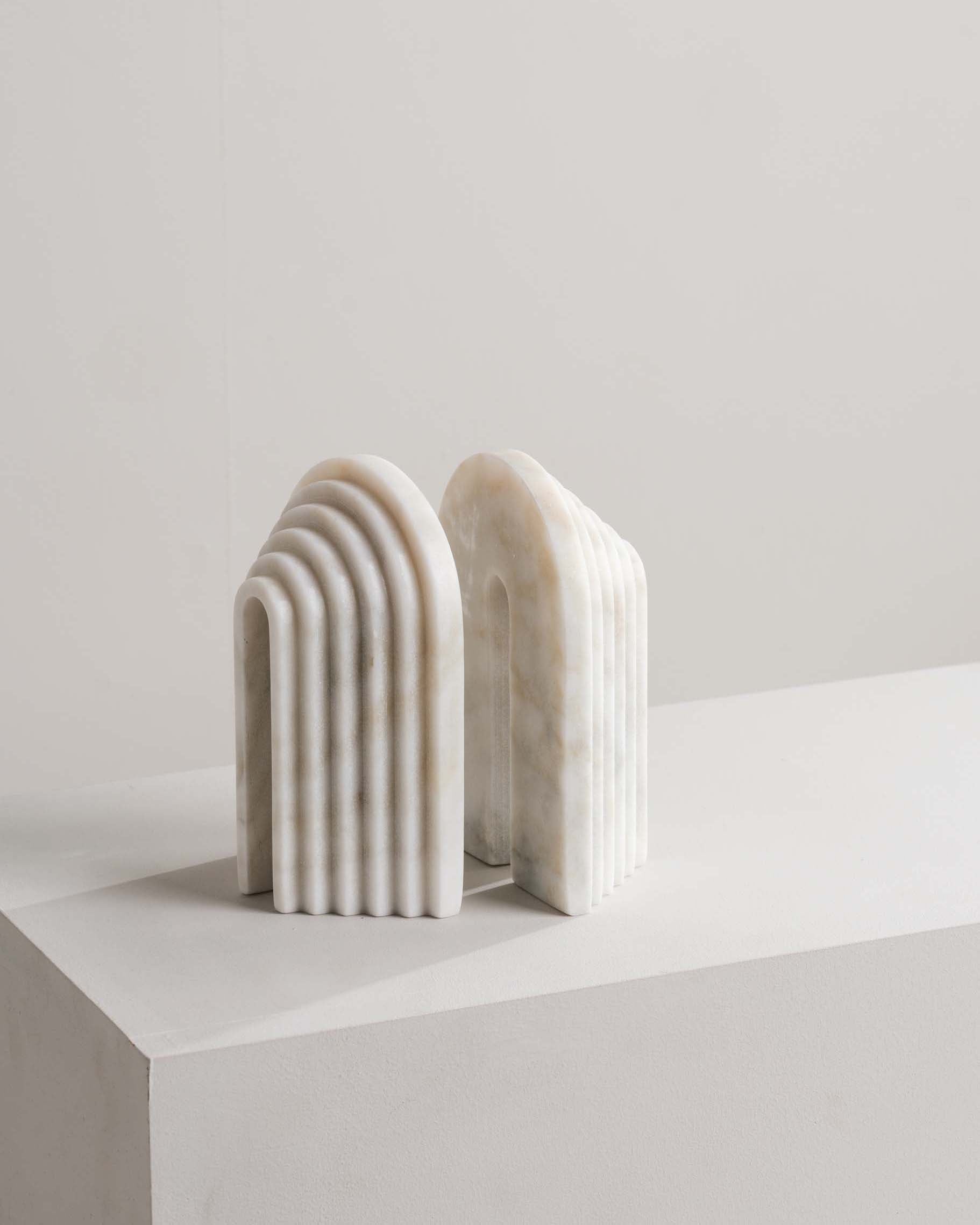 Ainsley White Marble Bookends