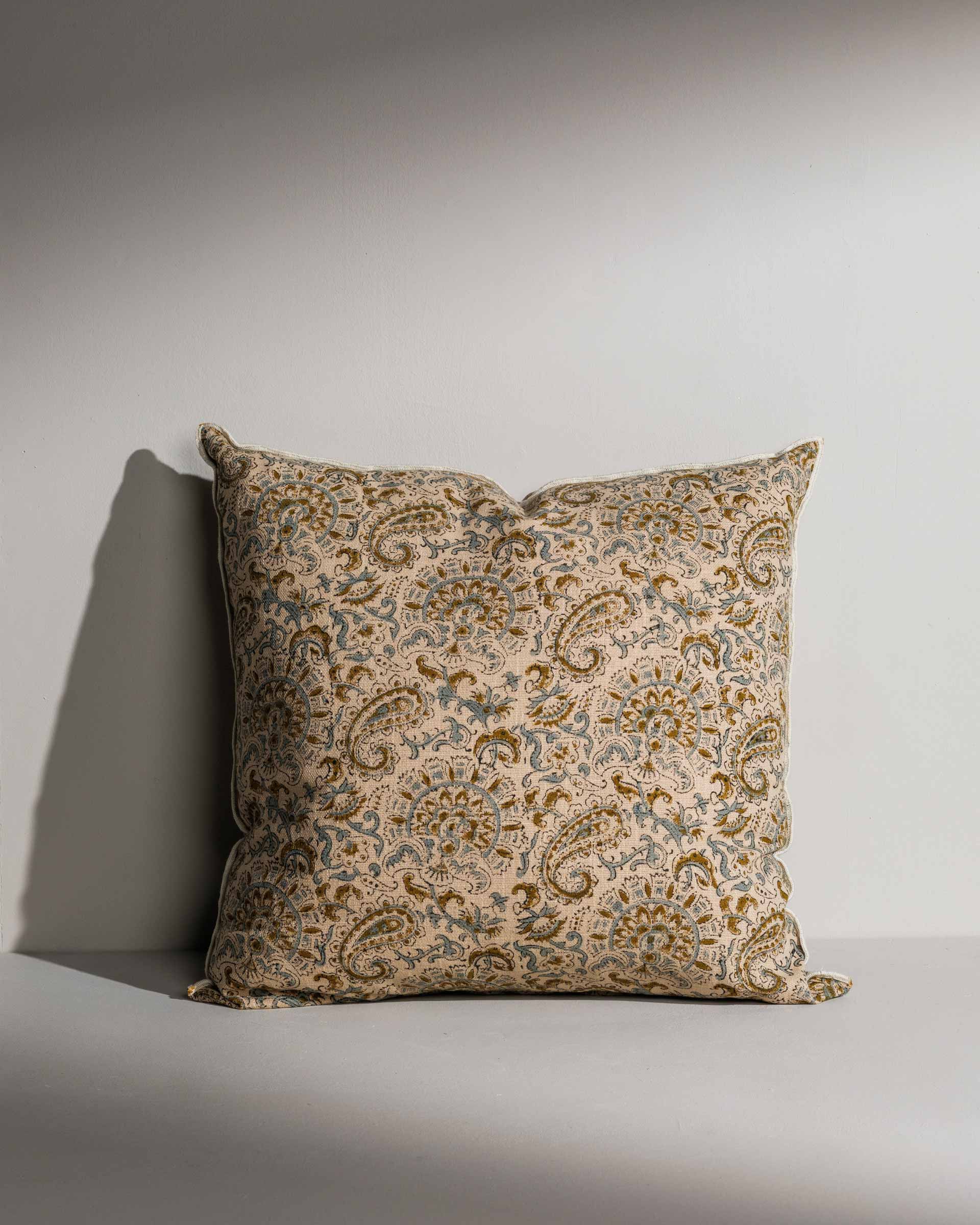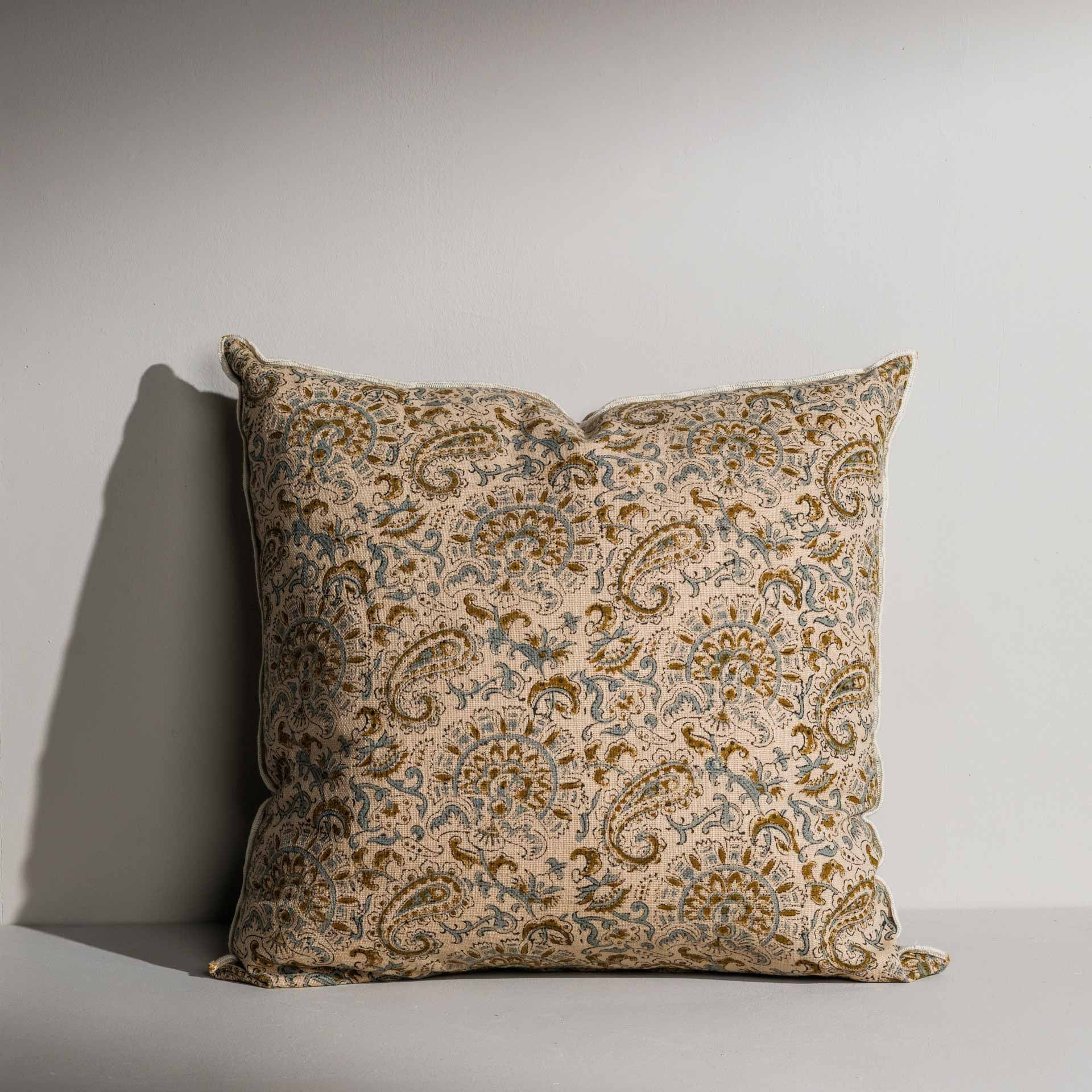 The beautiful feather filled Mabel cushion is hand block printed on both sides by artisans in Jaipur and finished with a contrast piping - Our Creative team suggest pairing it with the Nayeli, Danielle, Katie and Hailey cushions to create an added layer of interest to your room.