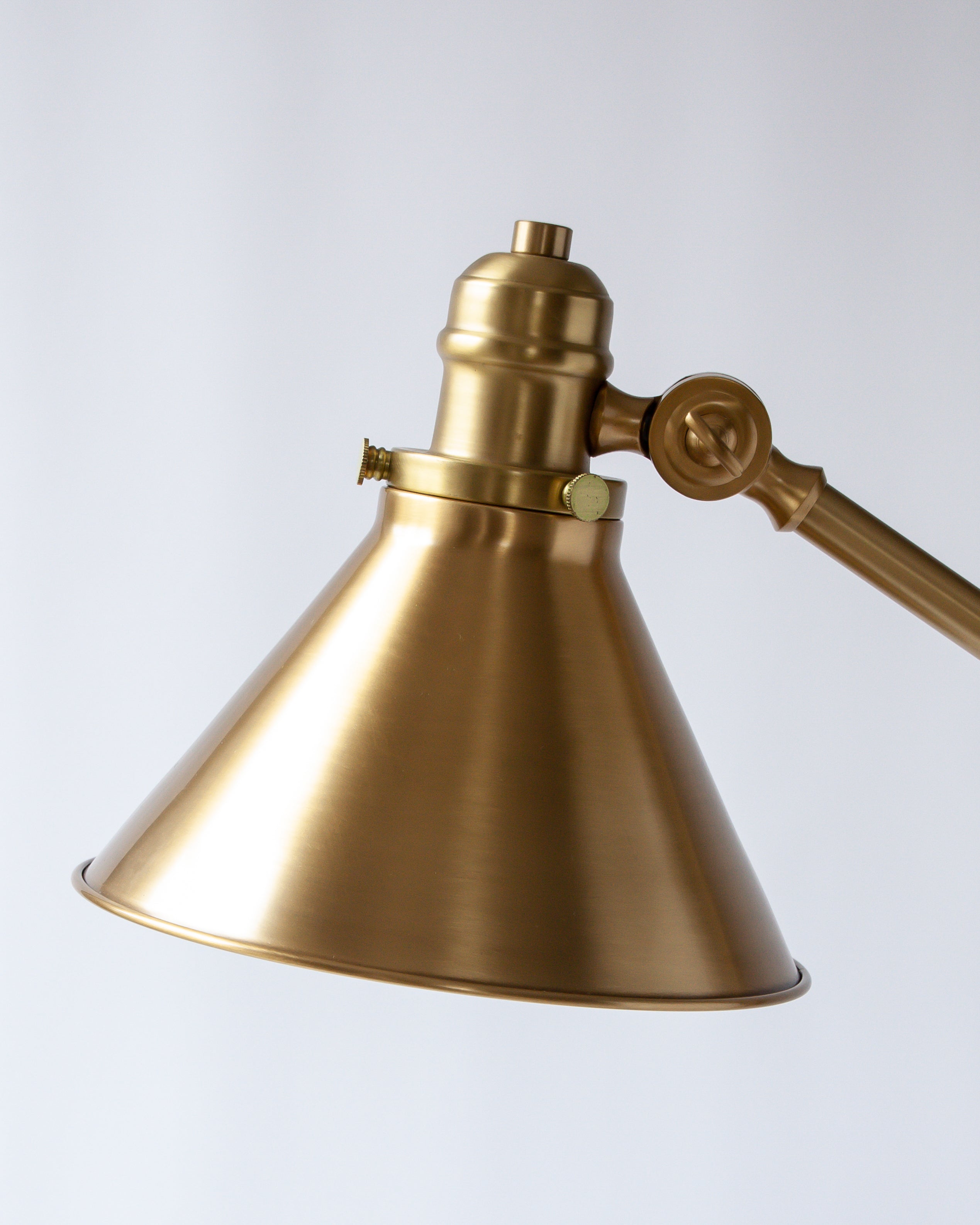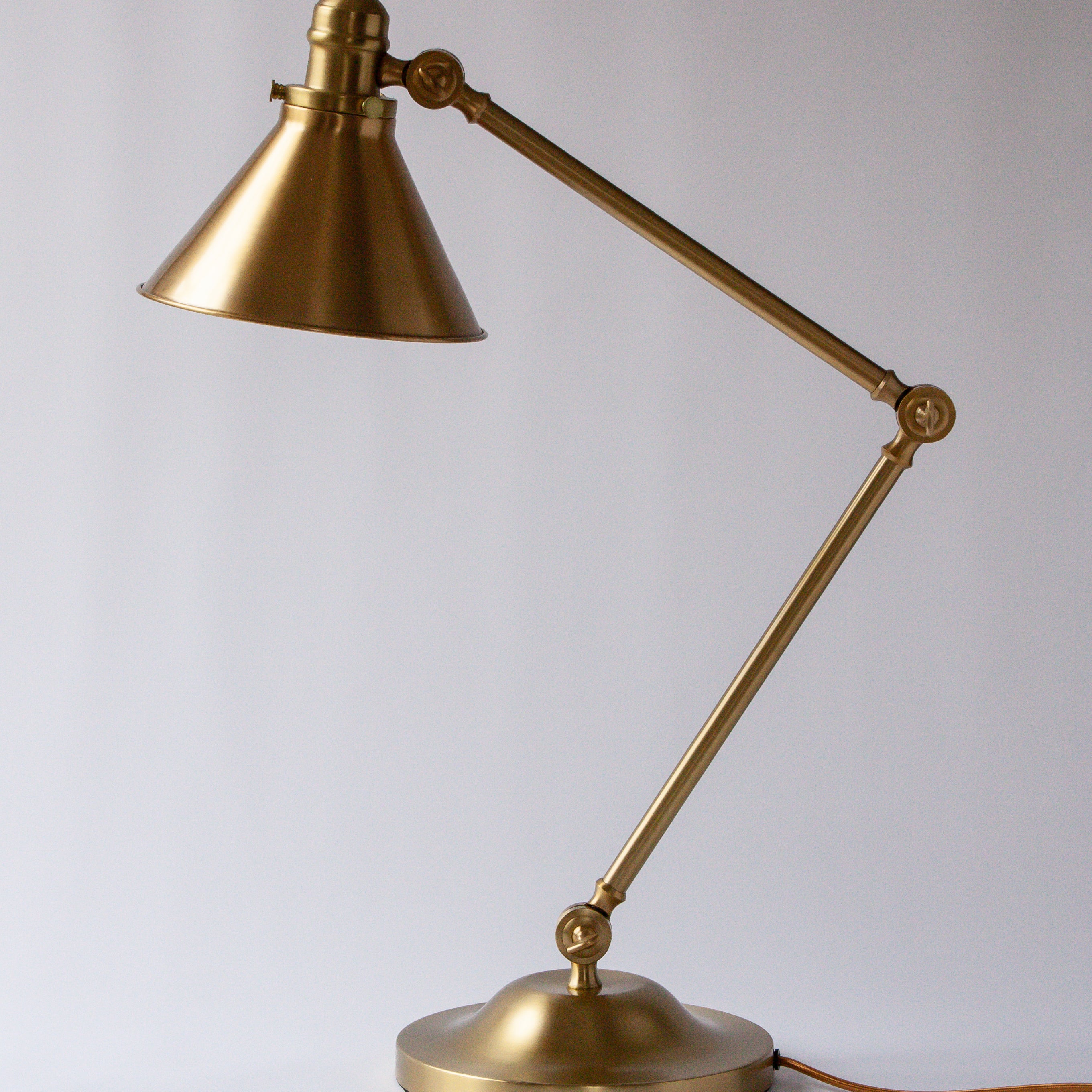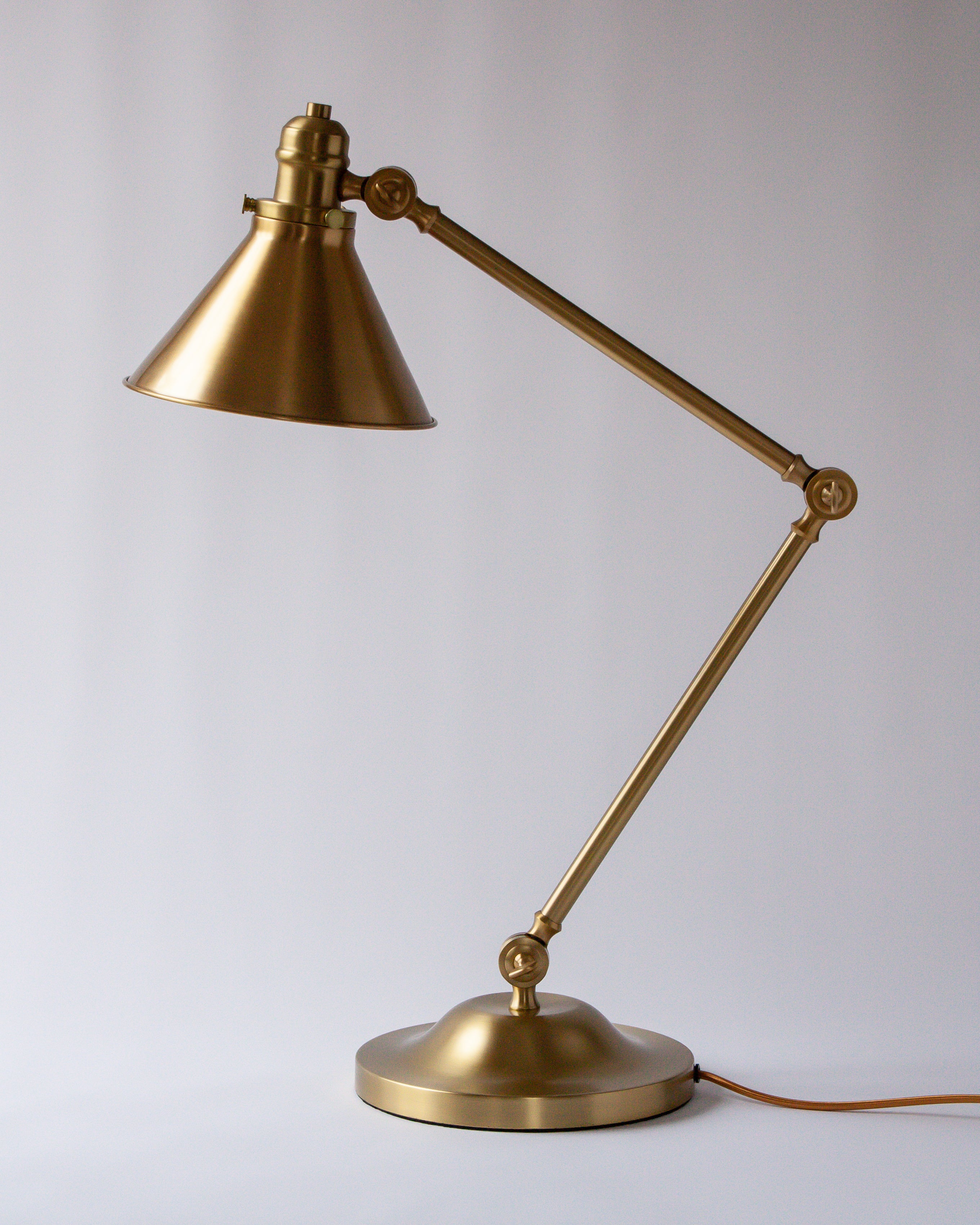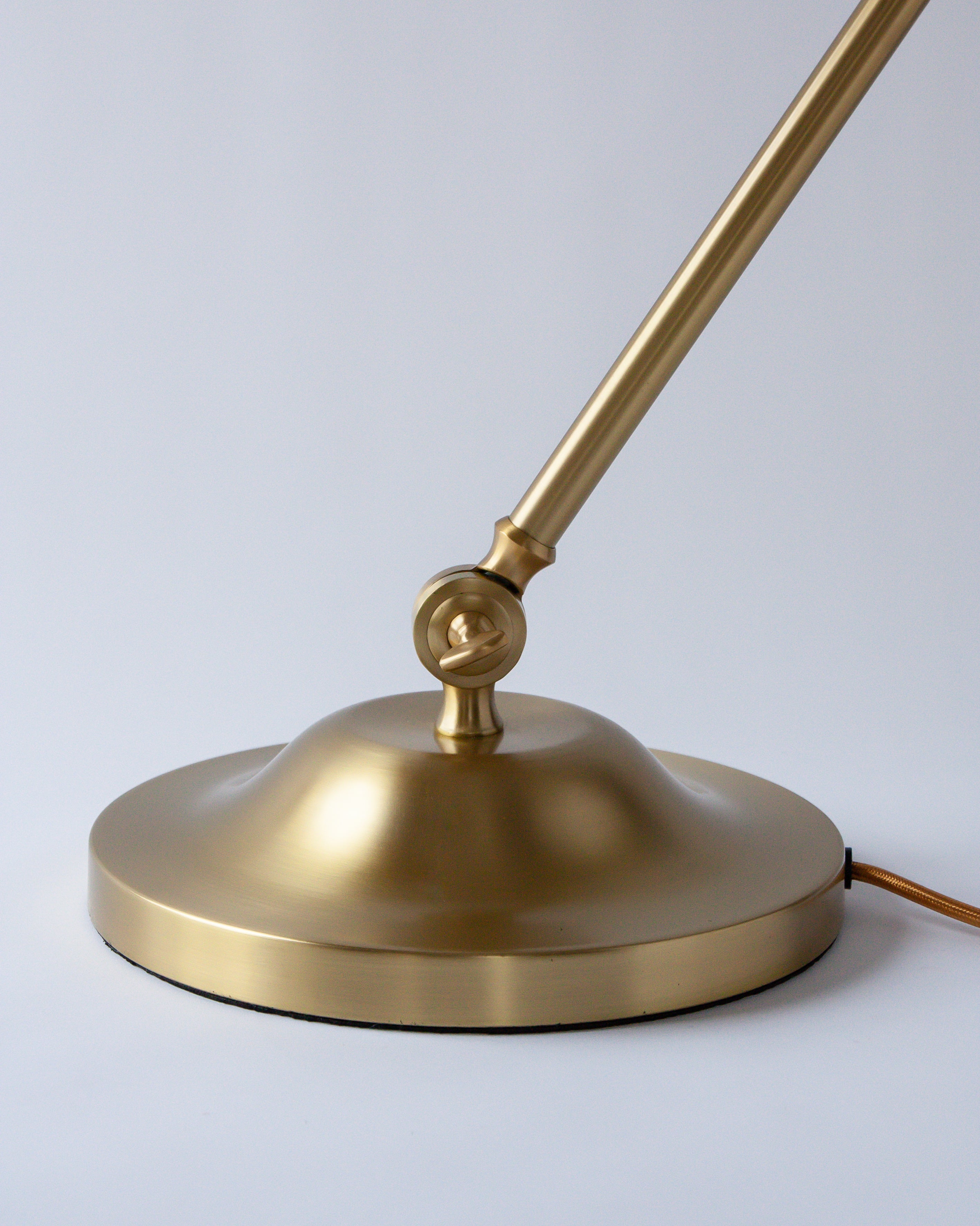 The Sofia desk lamp is inspired by the French mid-century design classic and is finished in aged brass.